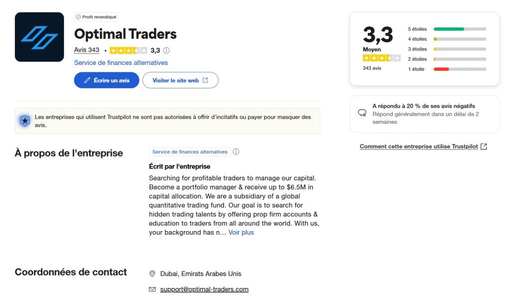 Avis sur la prop firm Optimal Traders